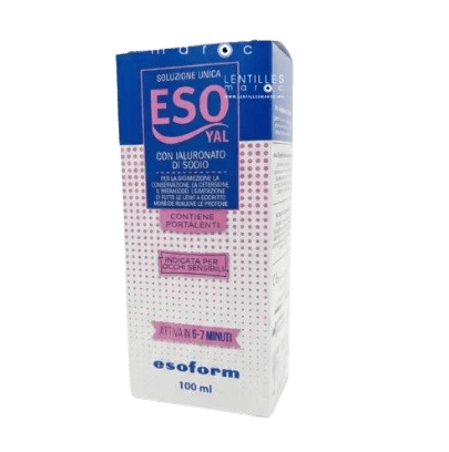 ESO YAL 100 mL es una solución multifuncional para el cuidado y mantenimiento de lentes de contacto blandas. Se trata de un líquido aseptico diseñado para limpiar, desinfectar, hidratar e hidratar tus lentes de contacto, todo en un solo producto.